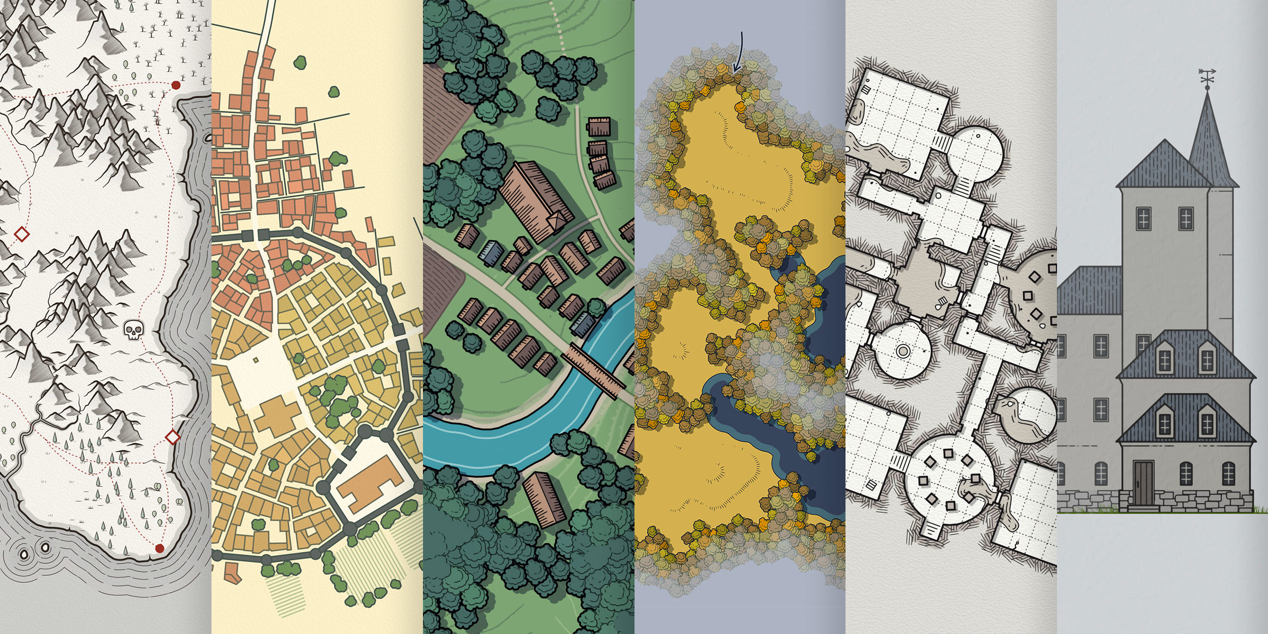 提供免费的程序化地图生成器,用于桌面角色扮演游戏和世界构建。